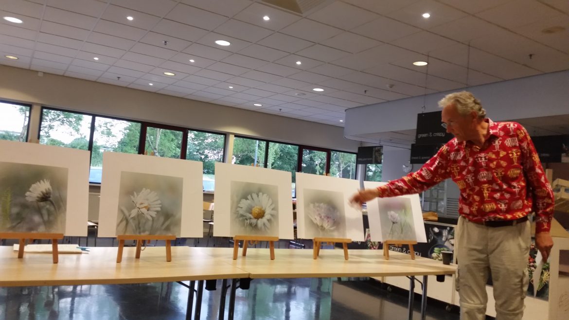 Er was een zeer afwisselend aanbod, variërend van water-en strand landschappen, macro-achtige natuurseries van korenvelden, veld- en/ of ijsbloemen, bomen, boomschors, insecten en een aantal series portretten al dan niet in het buitenland gemaakt. Daarnaast waren er een paar verrassende kleine zwart/wit series. Kortom mooie gevarieerde series om naar te kijken en vooral te bespreken en te waarderen.